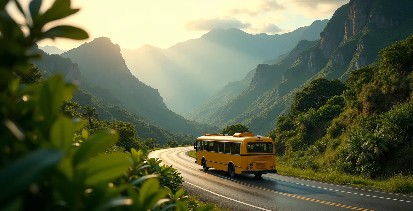 L’exemple le plus frappant est la fameuse « route aux 400 virages » menant à Cilaos. En voiture, le conducteur est concentré sur la route, stressé par les croisements. En bus, chaque passager devient un spectateur privilégié. Le véhicule s’élève lentement, dévoilant à chaque lacet des panoramas à couper le souffle sur les remparts et les cascades, sans le stress de la conduite.